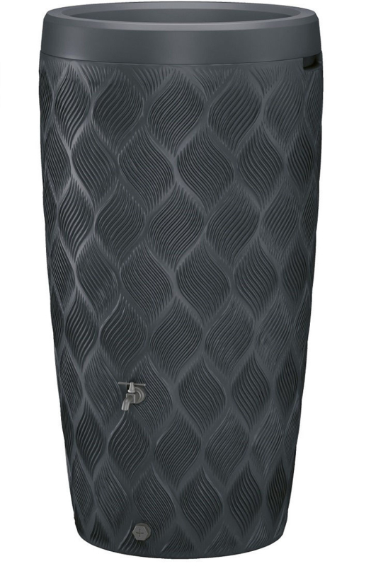 Regenton Flow Platinumgrijs Incl. Platenbak - 240 LDeze wave regenton Antraciet heeft een inhoud van 240 liter en is multifunctioneel te gebruiken. De regenton dient niet alleen als wateropslag, maar ook als plantenbak. Op de buitenkant zitten allemaal "wavy" lijnen, waardoor deze